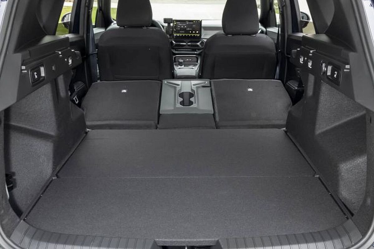 A bagageira tem 546 litros, que se estendem até 1.851 com os bancos rebatidos. Noutras versões, pode ultrapassar os 660. Gosto especialmente do fundo duplo, útil para guardar ferramentas e até um pneu suplente, um detalhe simples mas a que dou bastante valor.