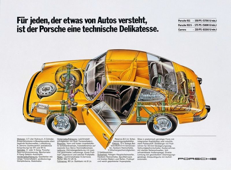 Por um lado, esta idéia baseava-se no facto de oferecer espaço para quatro ocupantes, uma bagageira dianteira e conforto suficientes para a utilização diária. Por outro, possuía um motor boxer de seis cilindros que graças a uma relação peso/potência invejável para a época, lhe permitia mais de 200 km/h de velocidade máxima.