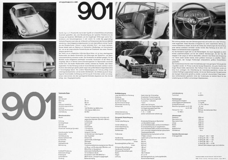 O design exterior e interior coube a Ferdinand “Butzi” Porsche, neto do fundador da marca. Foi ele quem definiu a silhueta e as proporções que se tornariam intemporais. Já a conceção técnica esteve a cargo do seu pai, Ferry Porsche, e da equipa de engenharia. Competiu-lhe evoluir a filosofia do Porsche 356.