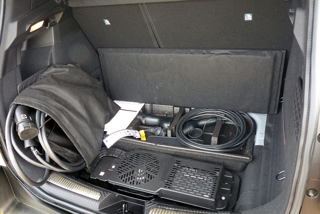 O carregamento pode ser feito até 100 kW em corrente contínua ou 11 kW em alternada. O ponto de corrente está no guarda-lamas esquerdo.