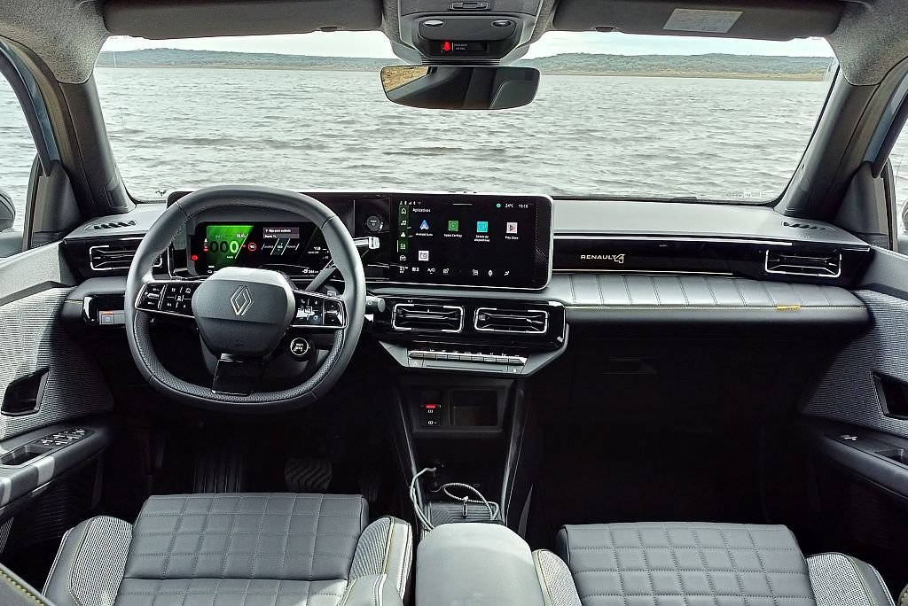 No interior, o equilíbrio e a ligação entre as linhas da clássica quatrelle e alguns toques mais modernos funciona bem. Há elementos de design que lembram a 4L. Mas a tecnologia digital com Google integrado e o assistente de voz Reno abrem as portas do futuro para o novo modelo.