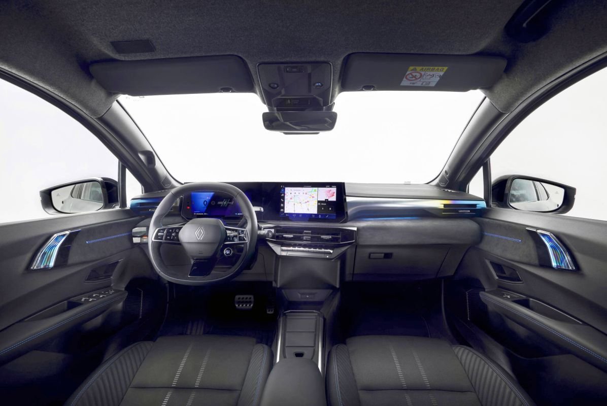 A dianteira é marcada pela nova assinatura luminosa em LED, com faróis penetrantes e luzes diurnas que lembram o losango Renault.